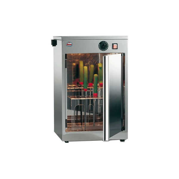 Зазвичай миття водою та спеціальними засобами не зможе знезаразити інструмент (особливо коли мова йде про сире м'ясо та рибу), а просто змиє бруд. Саме тому, щоб ніж був на 100% чистим, кухню вашого закладу необхідно обладнати стерилізатором для ножів. Наша компанія пропонує сучасний і максимально ефективний стерилізатор UV 16W від італійського виробника Sirman, який забезпечить максимальну дезінфекцію ваших ножів.