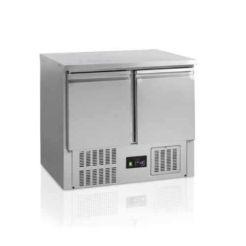 Стіл виготовлений з нержавіючої сталі AISI 201, динамічне охолодження, електронний пульт керування, 2 глухих дверей, регульовані по висоті ніжки.