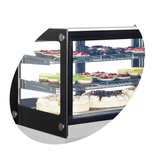 Якщо площа обмежена в кондитерських магазинах, кафе, спеціалізованих магазинах, для демонстрації продукції ідеально підходять настільні вітрини. Це чудове високоефективне рішення, яке пройшло тривале тестування, пропонує ідеальну демонстрацію продукції в поєднанні з мінімальними витратами на експлуатацію. Подвійне загартоване пряме скло, яке не запотіває, внутрішнє освітлення LED під кожною полицею характеризують це обладнання преміум класу. Розсувні скляні двері, що забезпечують зручне завантаження і роздачу. Всі моделі оснащені динамічною системою охолодження і автоматичним розморожуванням. Колір рамки на вибір чорний або сірий.