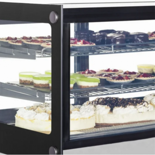 Якщо площа обмежена в кондитерських магазинах, кафе, спеціалізованих магазинах, для демонстрації продукції ідеально підходять настільні вітрини. Це чудове високоефективне рішення, яке пройшло тривале тестування, пропонує ідеальну демонстрацію продукції в поєднанні з мінімальними витратами на експлуатацію. Подвійне загартоване пряме скло, яке не запотіває, внутрішнє освітлення LED під кожною полицею характеризують це обладнання преміум класу. Розсувні скляні двері, що забезпечують зручне завантаження і роздачу. Всі моделі оснащені динамічною системою охолодження і автоматичним розморожуванням. Колір рамки на вибір чорний або сірий.