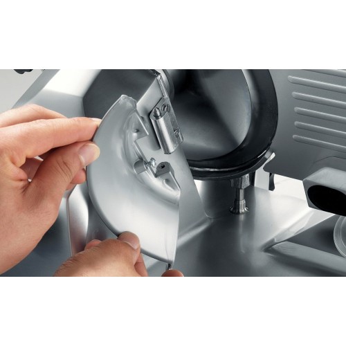 Професійні слайсери, такі як SIRMAN MIRRA250C із тефлоновим ножем, є незамінними інструментами для ресторанів, кафе, супермаркетів та інших підприємств торгівлі та громадського харчування. Цей слайсер - важливий помічник на кухні, що забезпечує швидке, акуратне та точне нарізування продукції. Завдяки спеціальному тефлоновому покриттю ножа пристрій ідеально підходить для нарізки продуктів з високим вмістом жиру, а також липких і м'яких продуктів, таких як сири, ковбаси, шинка, риба та інші. Тефлонове покриття знижує тертя, запобігає прилипання продуктів до леза і полегшує його очищення. Можливість регулювання товщини нарізки до 13 мм дозволяє використовувати слайсер для широкого спектру продуктів.