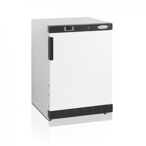 Морозильна шафа виготовлена з фарбованого металу, внутрішня частина – пластик, статичне охолодження, електронний пульт управління, глухі двері, замок, 2 стаціонарних полиці.