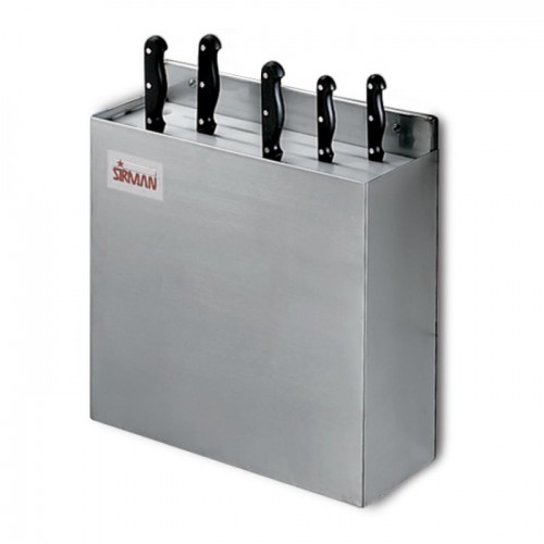 Стерилізатор підходить для зберігання будь-яких ножів, стерилізаційна функція здійснюється за допомогою рідини, відповідно до H.A.C.C.P. Виконано з нержавіючої сталі, кришка з білого поліетилену HD